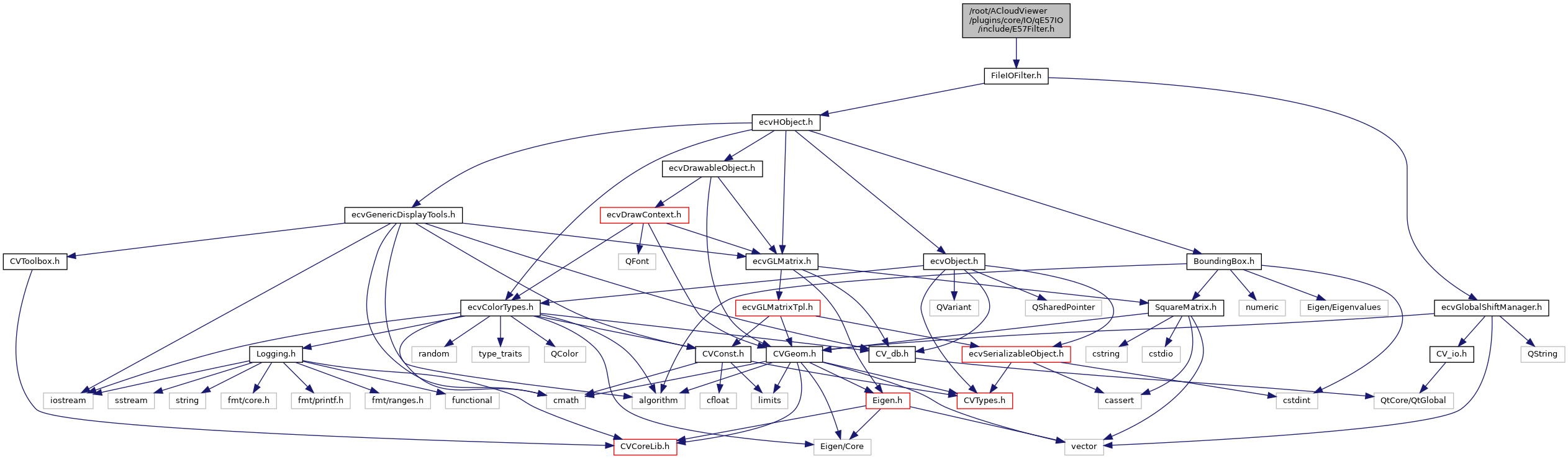 Include dependency graph for E57Filter.h: