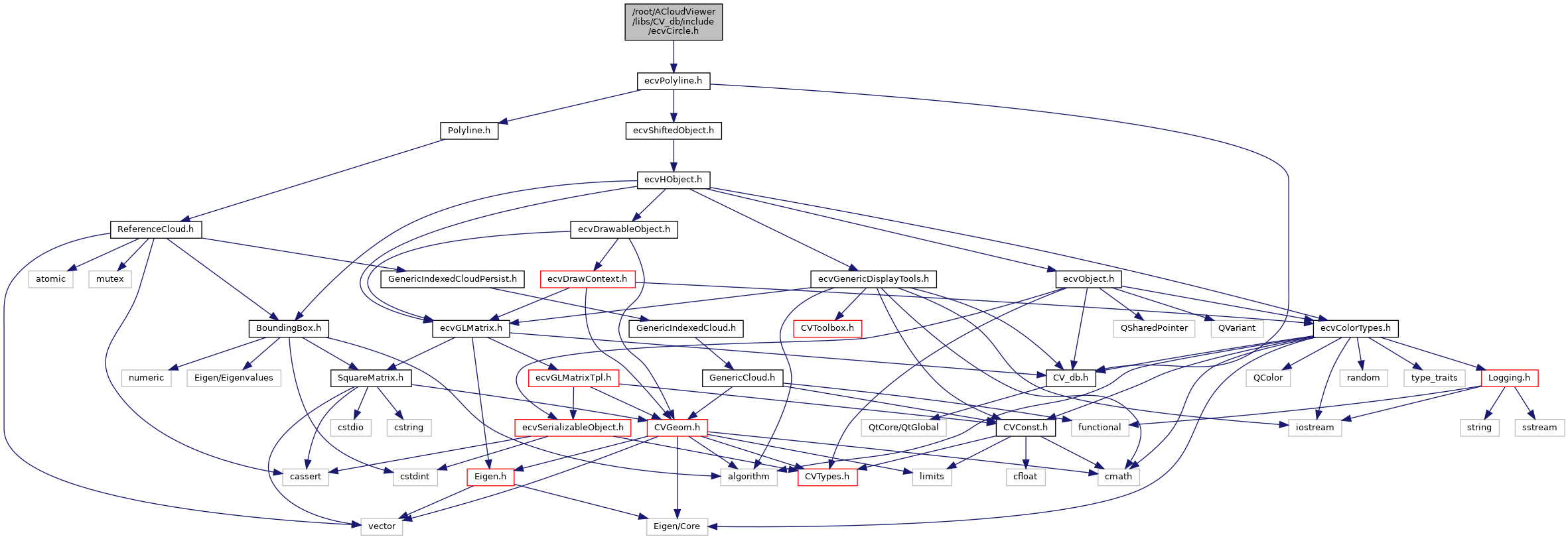 Include dependency graph for ecvCircle.h: