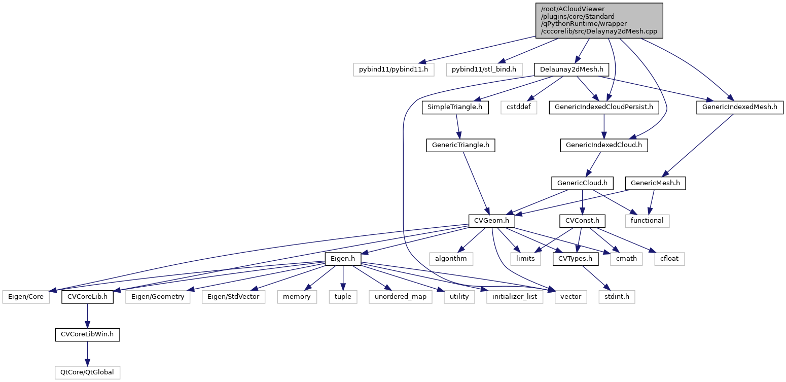 #include <pybind11/pybind11.h>#include <pybind11/stl_bind.h>#include <Delaunay2dMesh.h>#include <GenericIndexedCloud.h>#include <GenericIndexedCloudPersist.h>#include <GenericIndexedMesh.h>