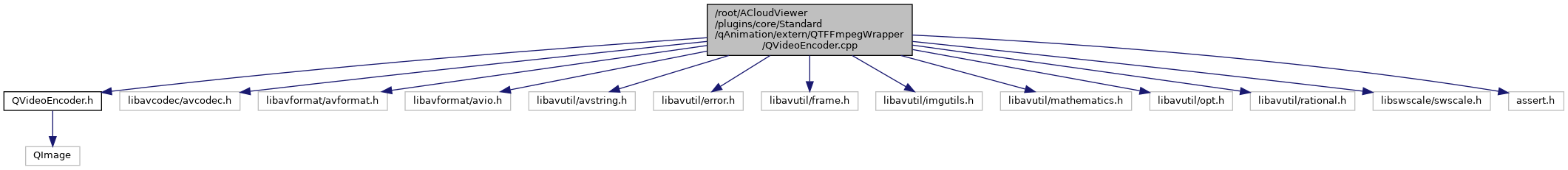 #include "QVideoEncoder.h"#include "libavcodec/avcodec.h"#include "libavformat/avformat.h"#include "libavformat/avio.h"#include "libavutil/avstring.h"#include "libavutil/error.h"#include "libavutil/frame.h"#include "libavutil/imgutils.h"#include "libavutil/mathematics.h"#include "libavutil/opt.h"#include "libavutil/rational.h"#include "libswscale/swscale.h"#include <assert.h>